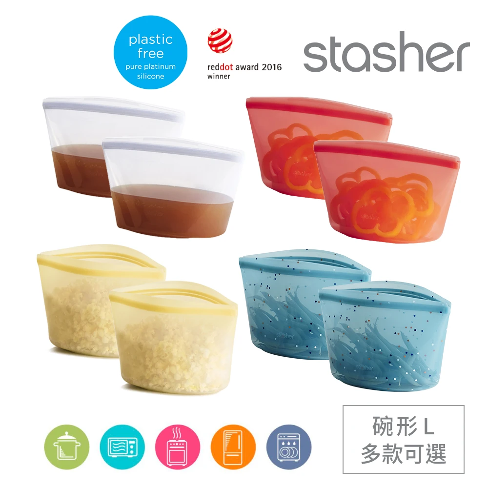 美國Stasher 碗形L 2入組|矽膠密封保鮮食物袋(食材分裝、冷凍微波、可重複使用千次、-40℃-218℃)