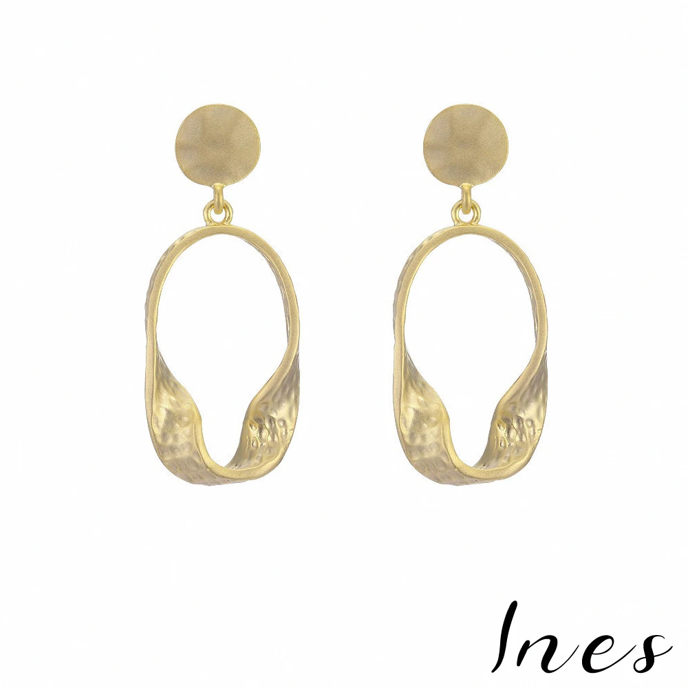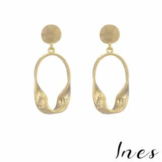 INES 韓國設計S925銀針復古不規則啞金設計耳環(S925銀針耳環 不規則耳環 啞金耳環)