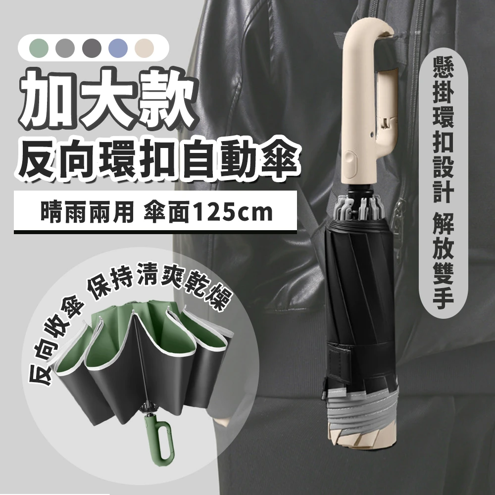 樂邦 防曬反向環扣黑膠自動勾勾雨傘(反向傘 大傘面 摺疊 環扣傘 三折傘 10骨)