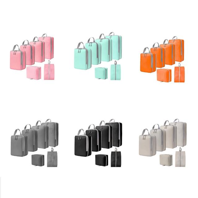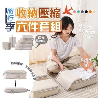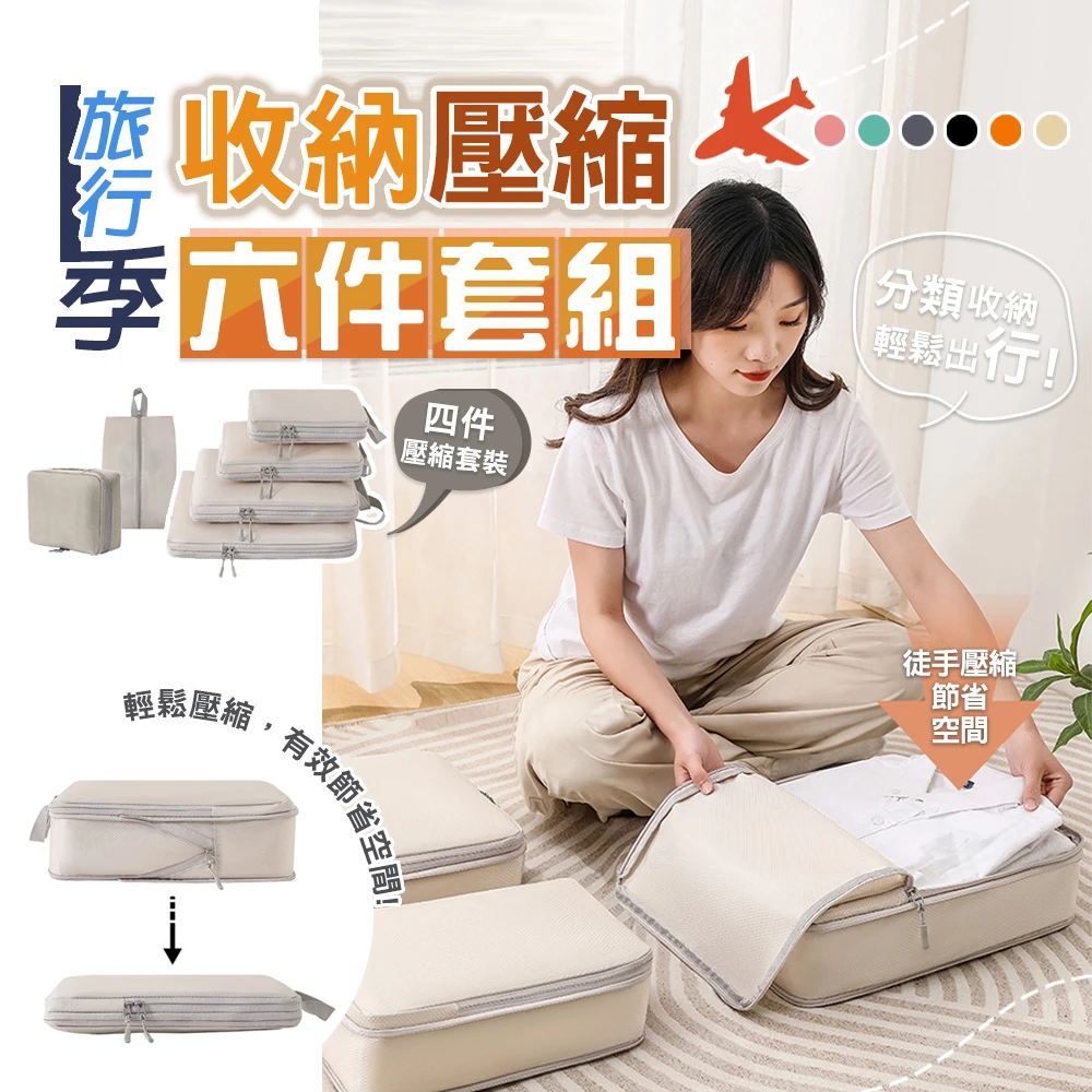 太力 6件套旅行季雙鏈壓縮收納袋(出國收納包*4+洗漱包*1+鞋袋*1 旅遊出差 行李箱分類)