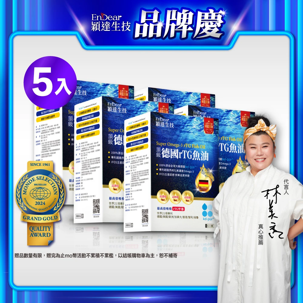 Endear穎達生技 德國頂級 rTG 魚油60顆x5入組(林美秀推薦/德國KD原廠授權/保健禮盒)