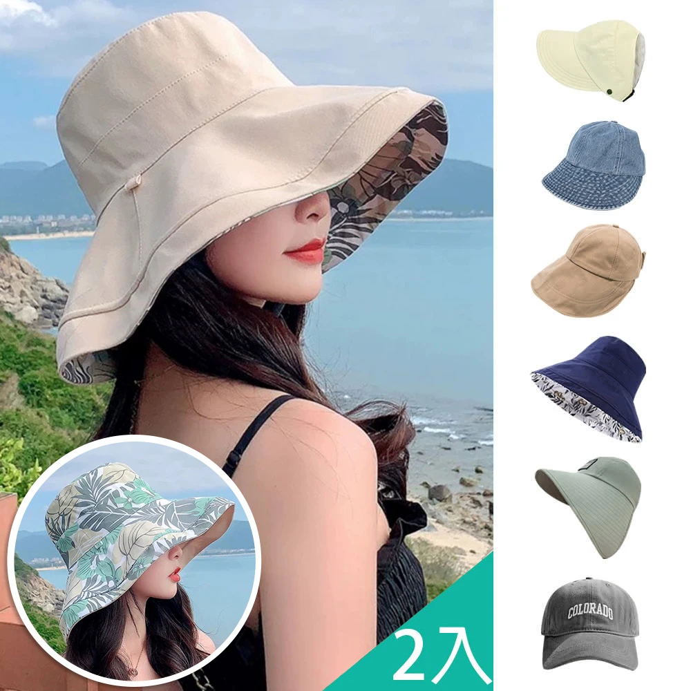 QIDINA 買一送一 夏季休閒防曬帽 2入組(防曬遮陽帽/漁夫帽/鴨舌帽/棒球帽)