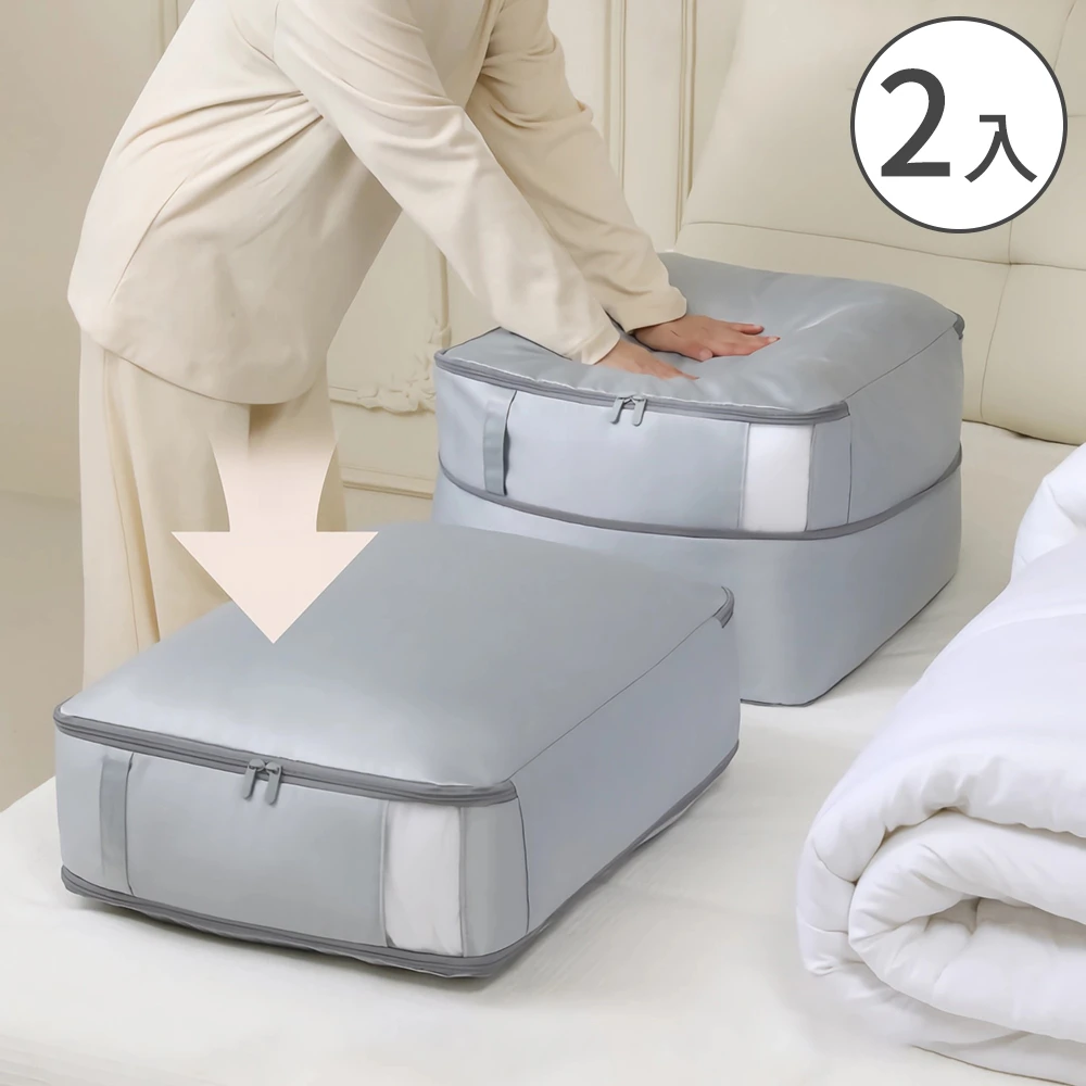 UNIQE 2入 高質感貢緞棉被收納壓縮袋 透氣可視網 加大容量枕頭羽絨被子防塵袋 可機洗羽絨外套衣服整理袋