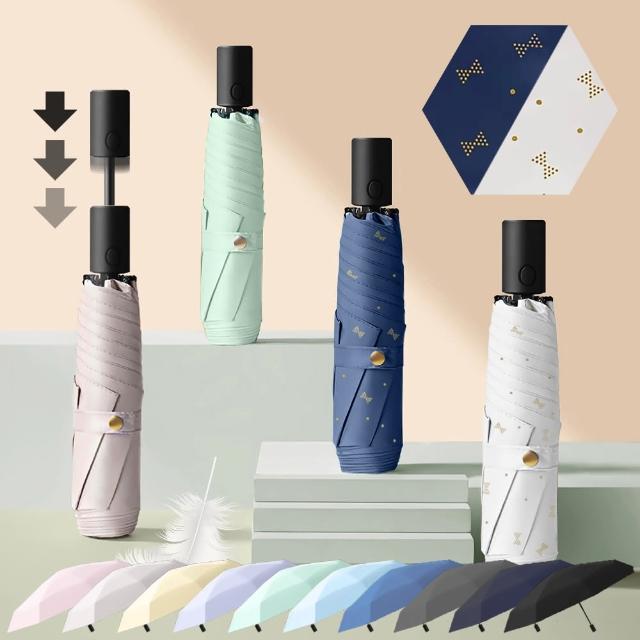 樂邦 2入/防曬環扣黑膠自動雨傘(大傘面 摺疊 環扣傘 勾勾傘 三折傘 10骨)