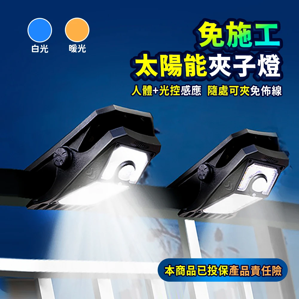 Mr.U 優先生 LED高亮可夾 免施工 太陽能感應燈 中號(防水 太陽能夾燈 壁燈 照明燈 庭院燈 露營燈)