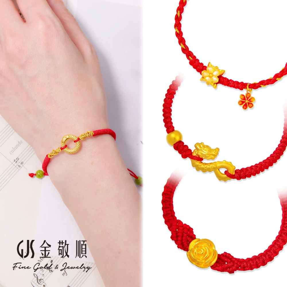 GJS 金敬順 黃金手鍊 平安紅繩 編織繩手 多選款(金重:0.20錢/+-0.05錢)