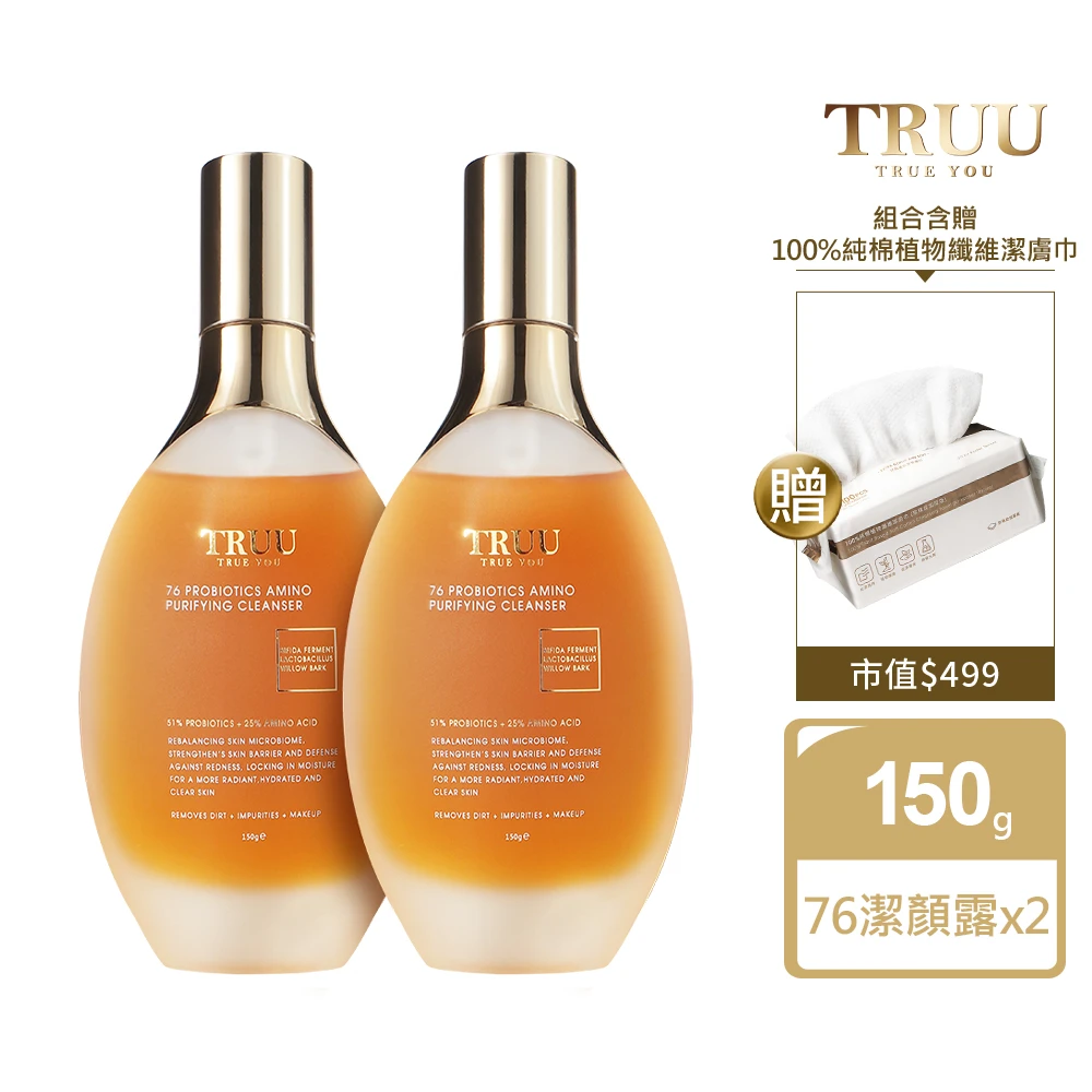 TRUU 童 76酵母胺基酸淨膚潔顏露150g 兩入 送 100%純棉植物纖維潔膚巾