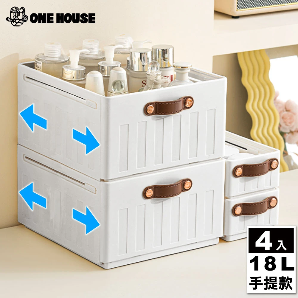 ONE HOUSE 18L 川櫻伸縮折疊收納盒_手提款(4入)