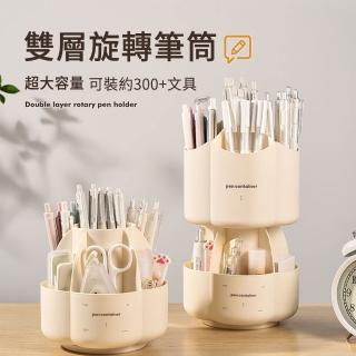 MUAN 雙層旋轉筆筒 辦公文具收納盒 桌上小物收納 刷具收納桶 多功能筆筒