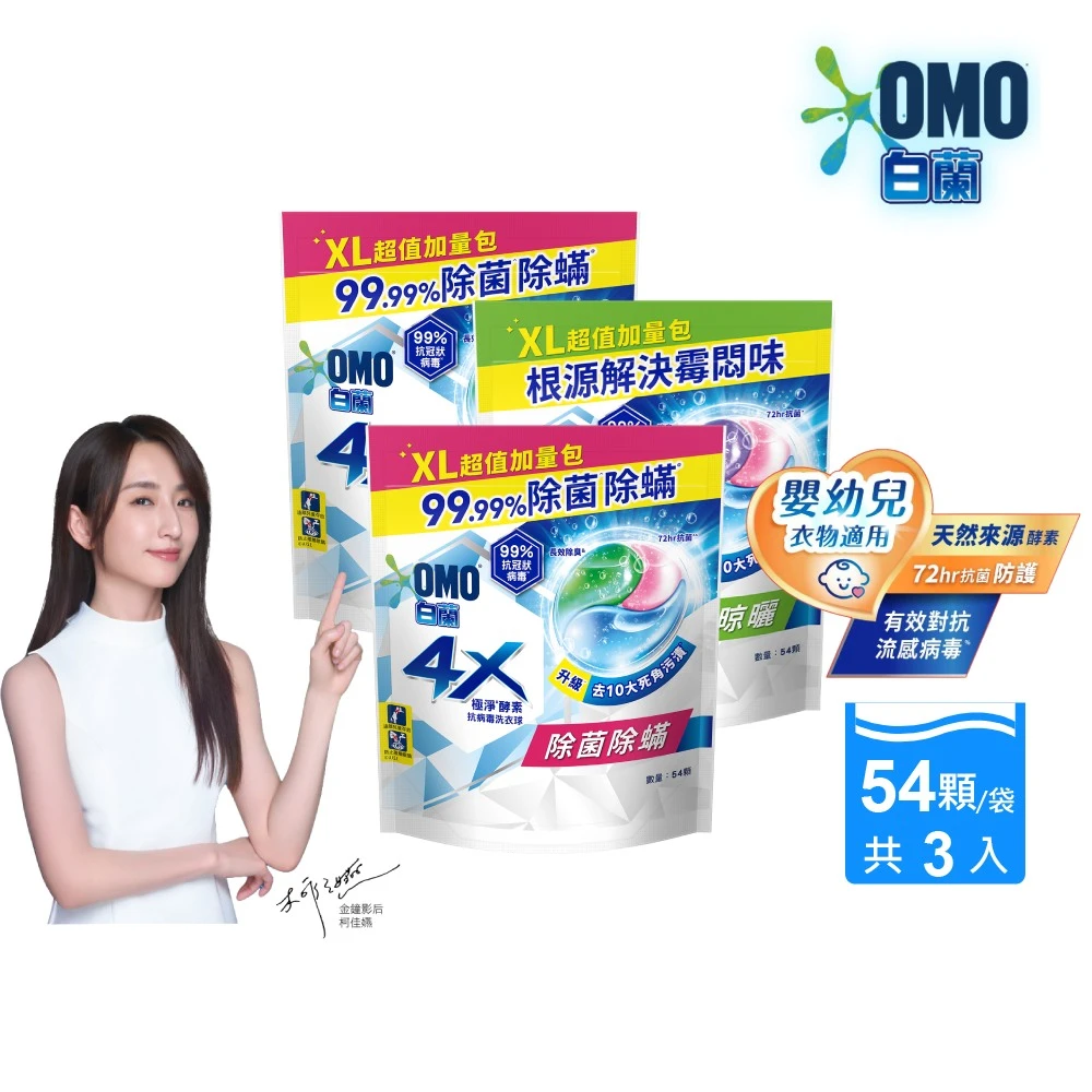 白蘭 買2送1★4X極淨酵素抗病毒洗衣球 54顆/袋 3入組(共162顆 除菌除蟎/室內晾曬 嬰幼兒適用)