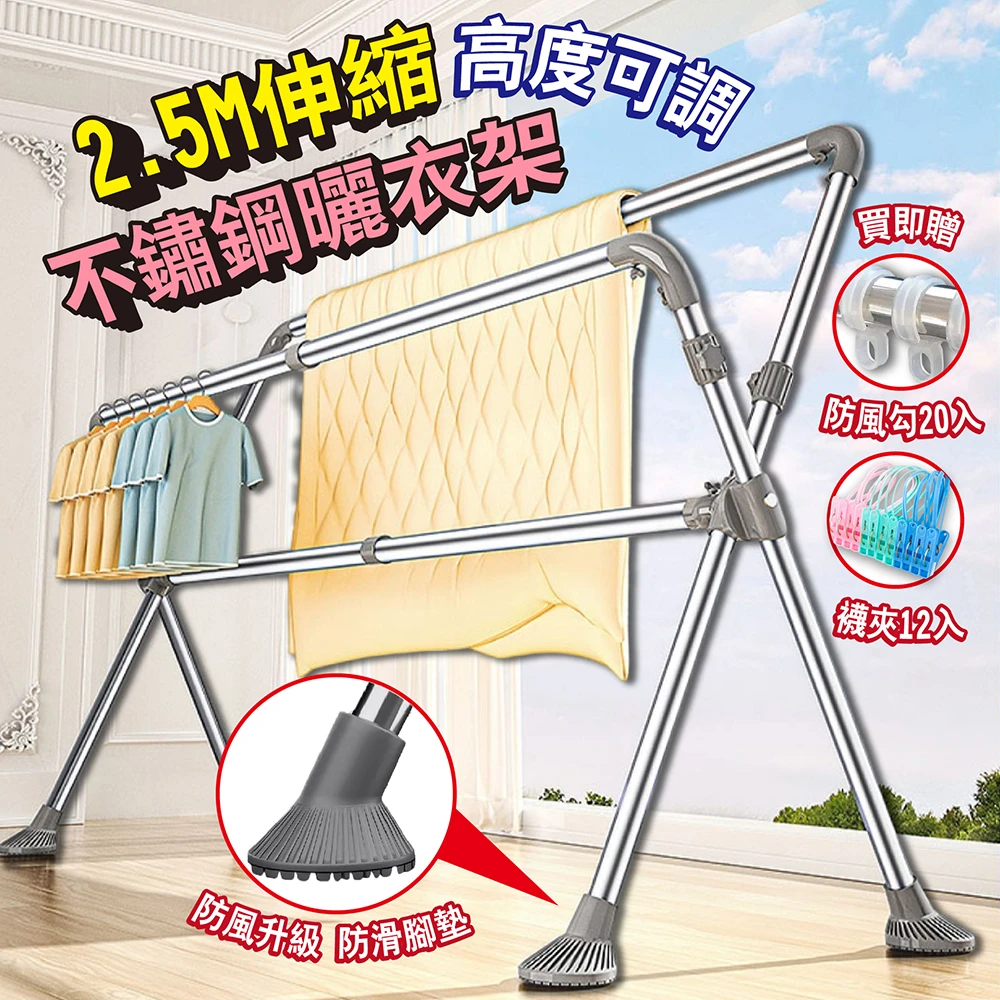 Ashley House 2.5米X型不鏽鋼三桿伸縮曬衣架升級單桿升降(晾衣架 曬衣桿 伸縮晾衣架 掛衣架)