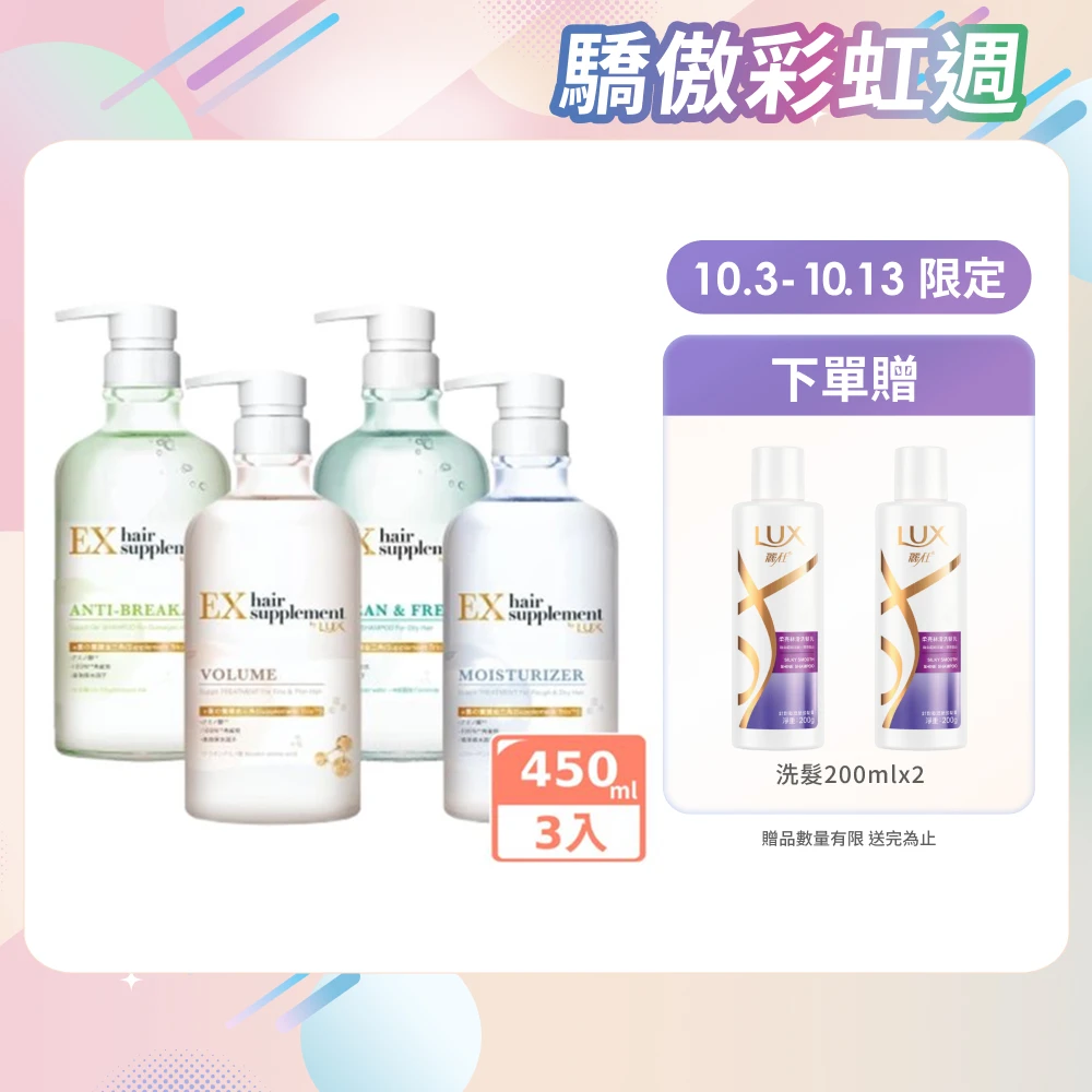 LUX 麗仕 女大推薦 日本製髮的補給 胺基酸洗髮精/護髮乳450gx3入(絲蛋白/膠原蛋白/角蛋白/冰河水)