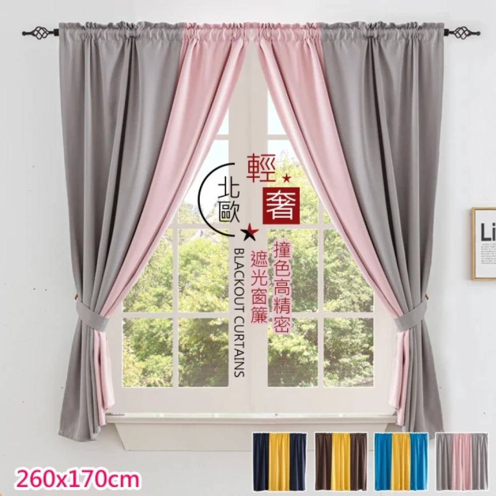 巴芙洛 無印風格 雙色高精密遮光窗簾260cm*170cm(一窗2片組合窗簾/風水簾/窗簾)