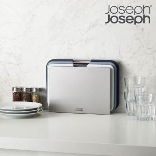 Joseph Joseph Nest系列 砧板三件組-灰藍一般款(沾板 切菜板 收納 雙面使用 瀝水)