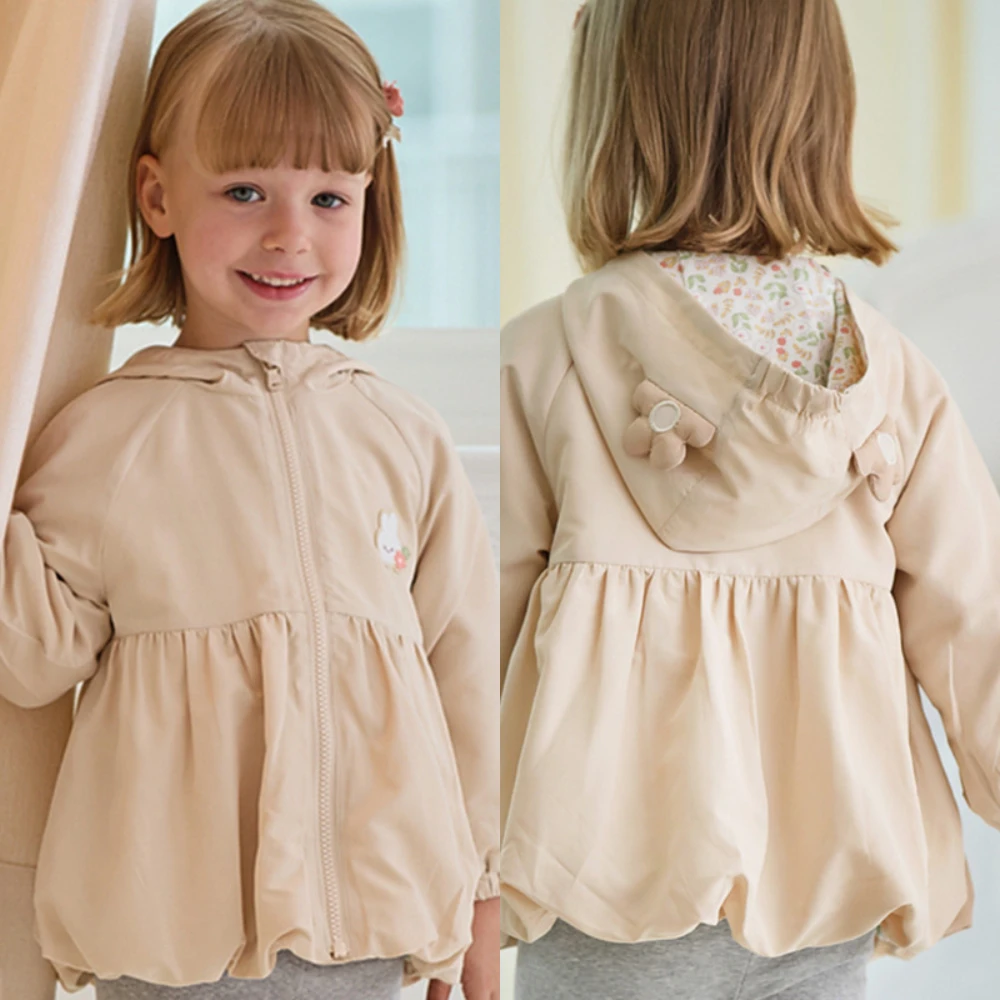 【Dave Bella】兔兔小花刺繡立體花連帽花苞下擺三防外套(DB3241855)【Dave Bella】兔兔小花刺繡立體花連帽花苞下擺三防外套(DB3241855)