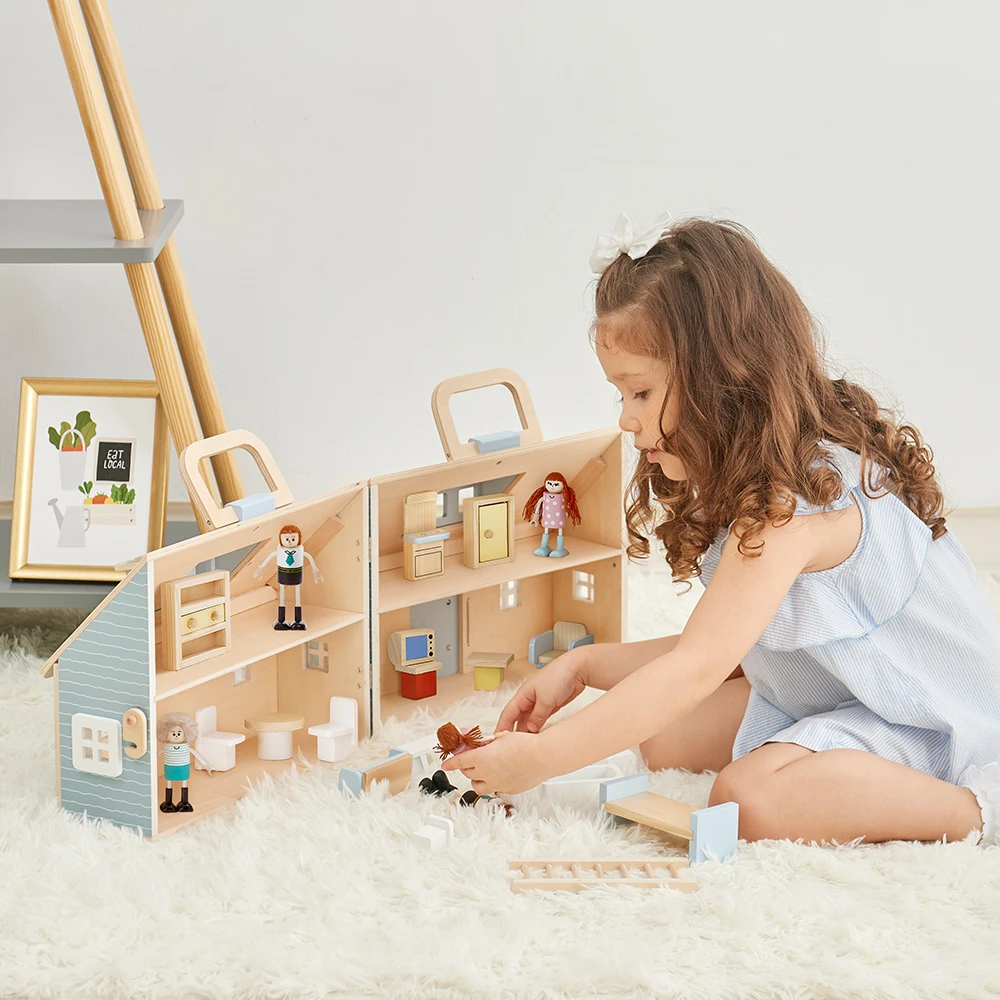 Teamson 便攜式木製童話娃娃屋(隨身攜帶的夢幻小屋)