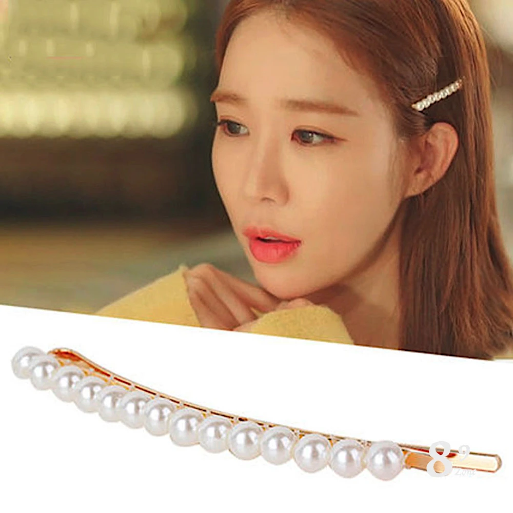 89 zone 法式古典氣質珍珠 髮飾 頭飾 飾品 一字夾 髮夾 1 入(白/香檳/灰)