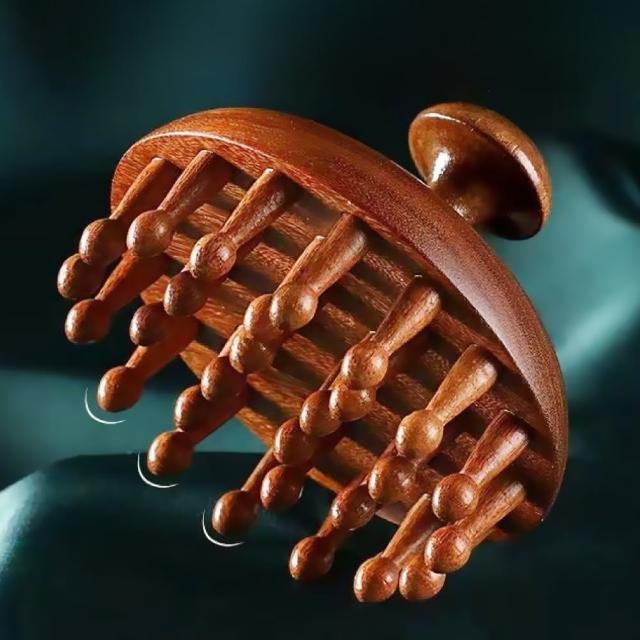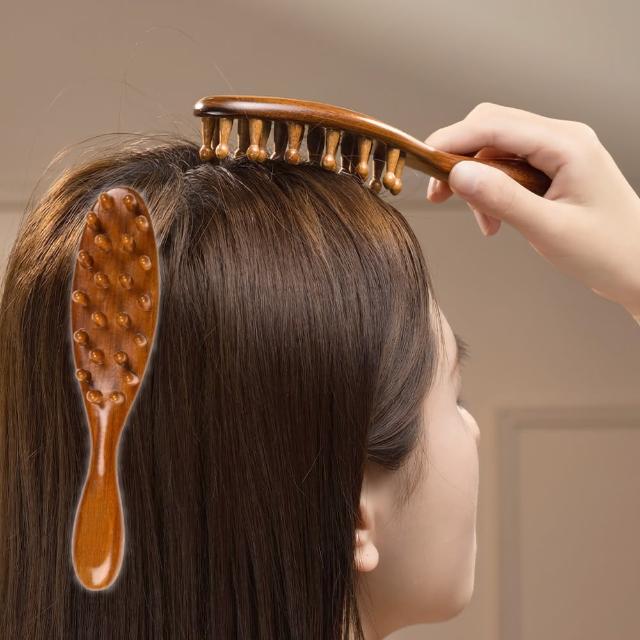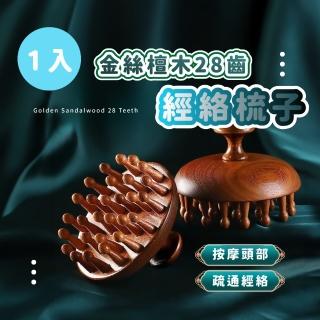 天然圓潤 金絲檀木28齒經絡梳子(寬齒梳 頭皮梳 按摩梳 肩頸頭療 木梳 穴位按摩 刮痧棒 臉部按摩)