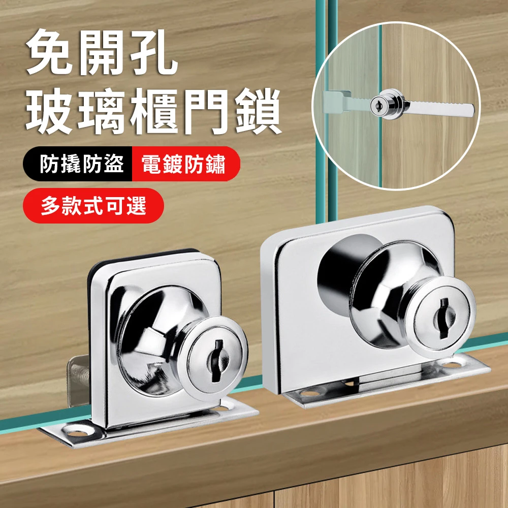 ZIPJOY 玻璃櫥窗鎖 免開孔櫃門鎖 單門/雙門玻璃窗鎖 窗鎖 暗閂鎖 玻璃門鎖(展示櫃//櫥櫃/酒櫃/檔櫃)