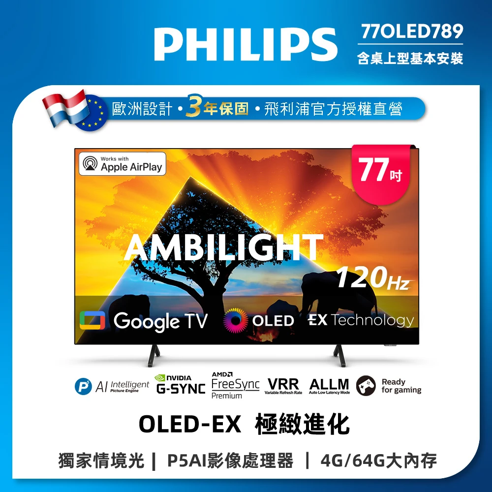【Philips 飛利浦】77型4K 120Hz OLED Google TV 智慧顯示器(77OLED789)【Philips 飛利浦】77型4K 120Hz OLED Google TV 智慧顯示器(77OLED789)【Philips 飛利浦】77型4K 120Hz OLED Google TV 智慧顯示器(77OLED789)