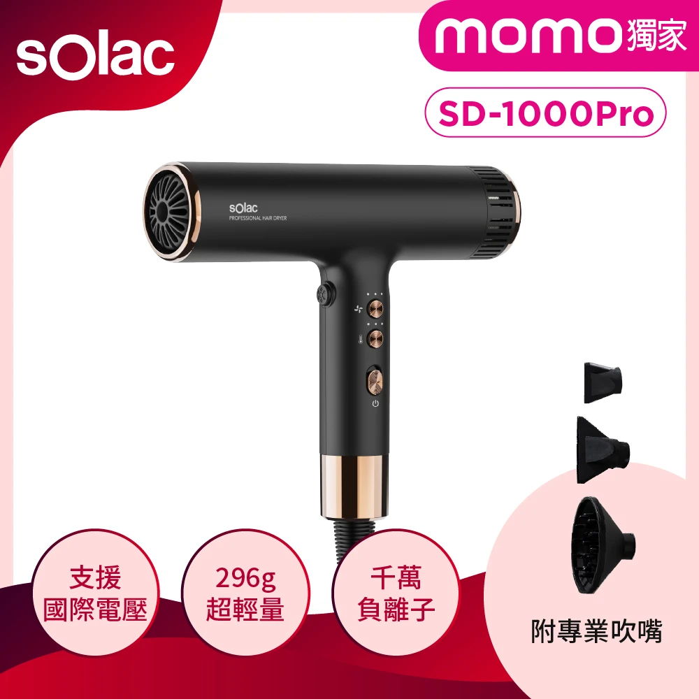 SOLAC 專業負離子雙電壓吹風機-黑金色(SD-1000 Pro-K)