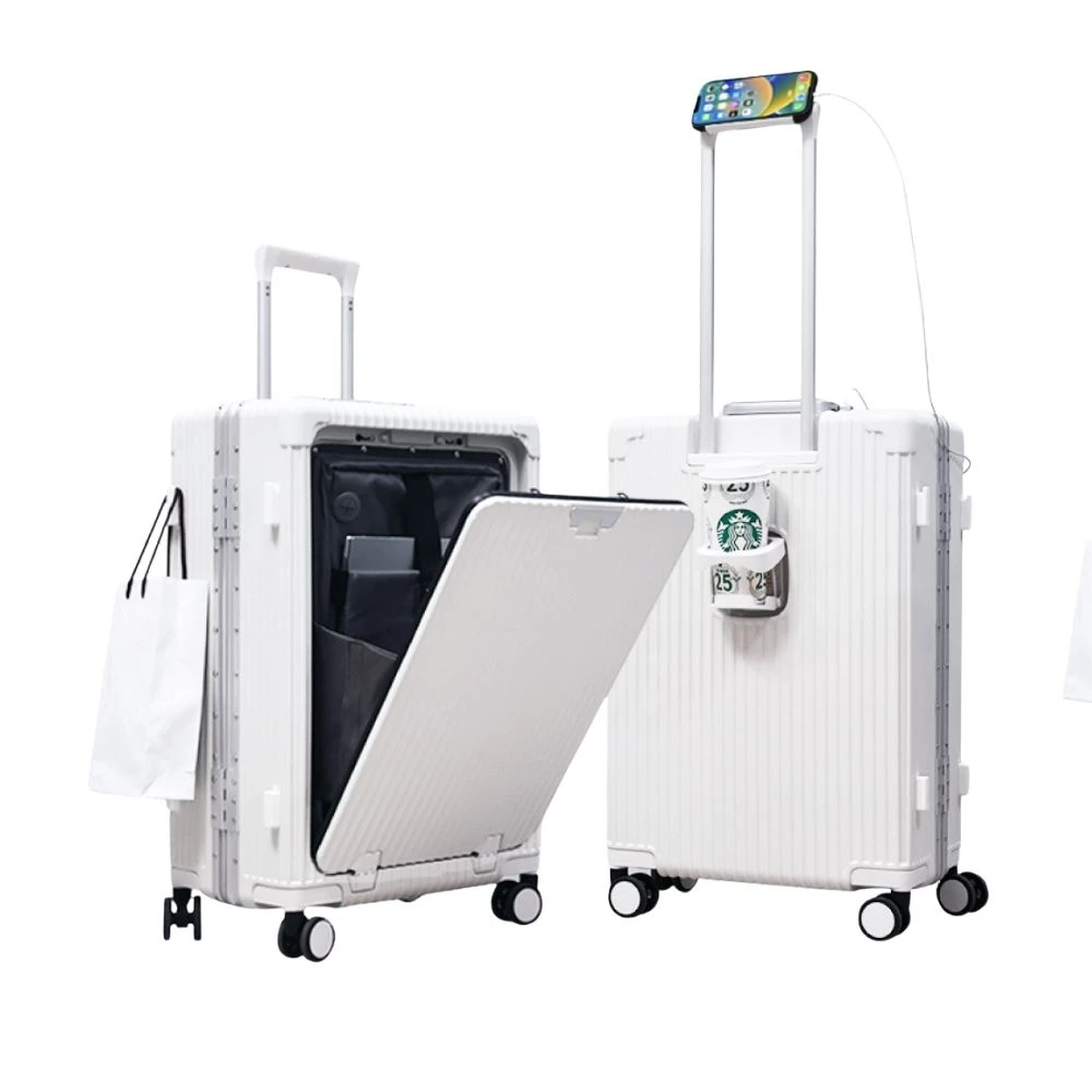 Arlink 26吋 鋁框行李箱 前開式行李箱26吋 杯架 手機架 海關鎖(行李箱26吋/行李箱束帶/多功能行李箱)