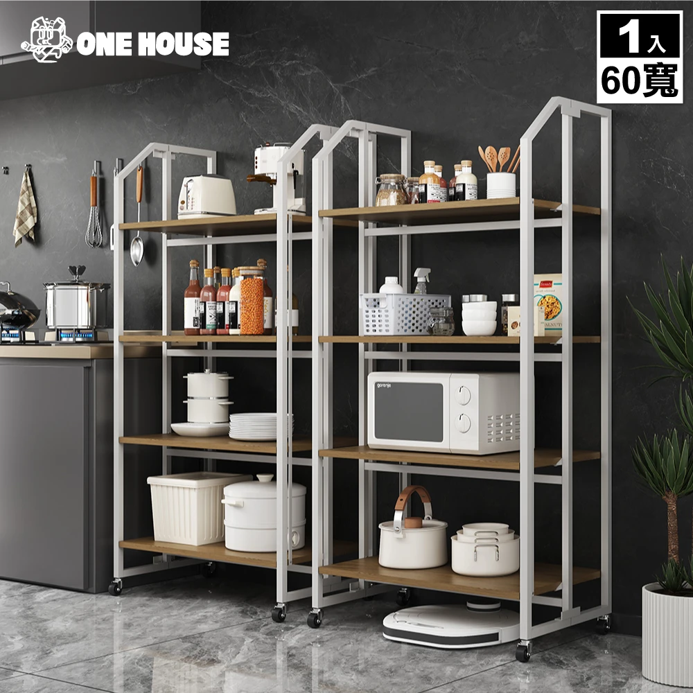 ONE HOUSE 四層60寬_洛克 鐵匠系免安裝折疊置物架(收納架/免組裝架/電器架/書架/書櫃/收納櫃/廚房架)