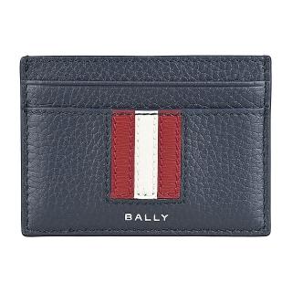 BALLY BALLY Ribbon燙銀LOGO小牛皮紅白紅條紋設計4卡開口式卡夾(男款/午夜藍)