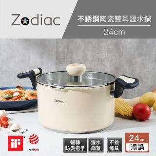 Zodiac 諾帝亞 不銹鋼陶瓷雙耳瀝水鍋24cm(附贈304不鏽鋼湯勺)