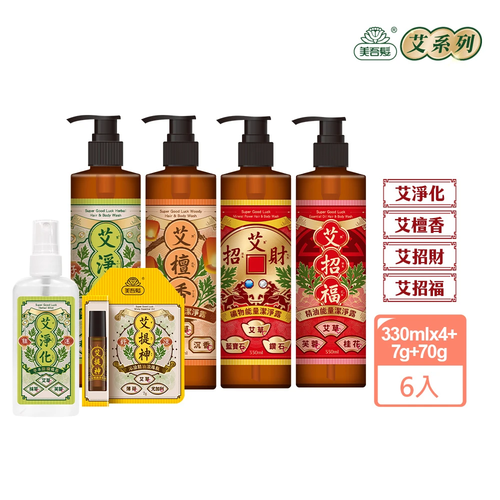 美吾髮 momo獨家 艾系列 六六大順招財淨化組 淨化+招財+招福+檀香潔淨露330ml+除穢噴霧+提神滾珠(開運)