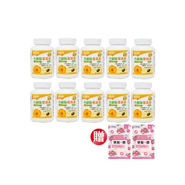 健康優見 高單位葉黃素軟膠囊x10瓶(30粒/瓶)+贈永信HAC 葉酸+鐵口含錠x2袋(120錠/袋)