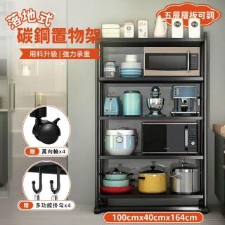 STYLE 格調 荷重五層碳鋼40*100*164cm鐵力士架置物架-帶輪子送掛鈎(鐵架/收納/櫃子/電器櫃/層架)