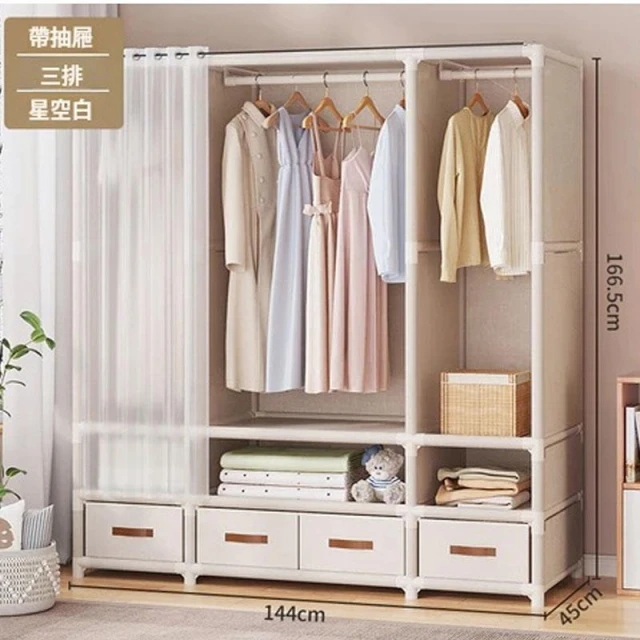 樂多家居 (109*45*168.5cm)衣櫥 衣櫃 簡易衣櫥 收納置物架(帶抽屜設計 加大內部容量 預購15天)
