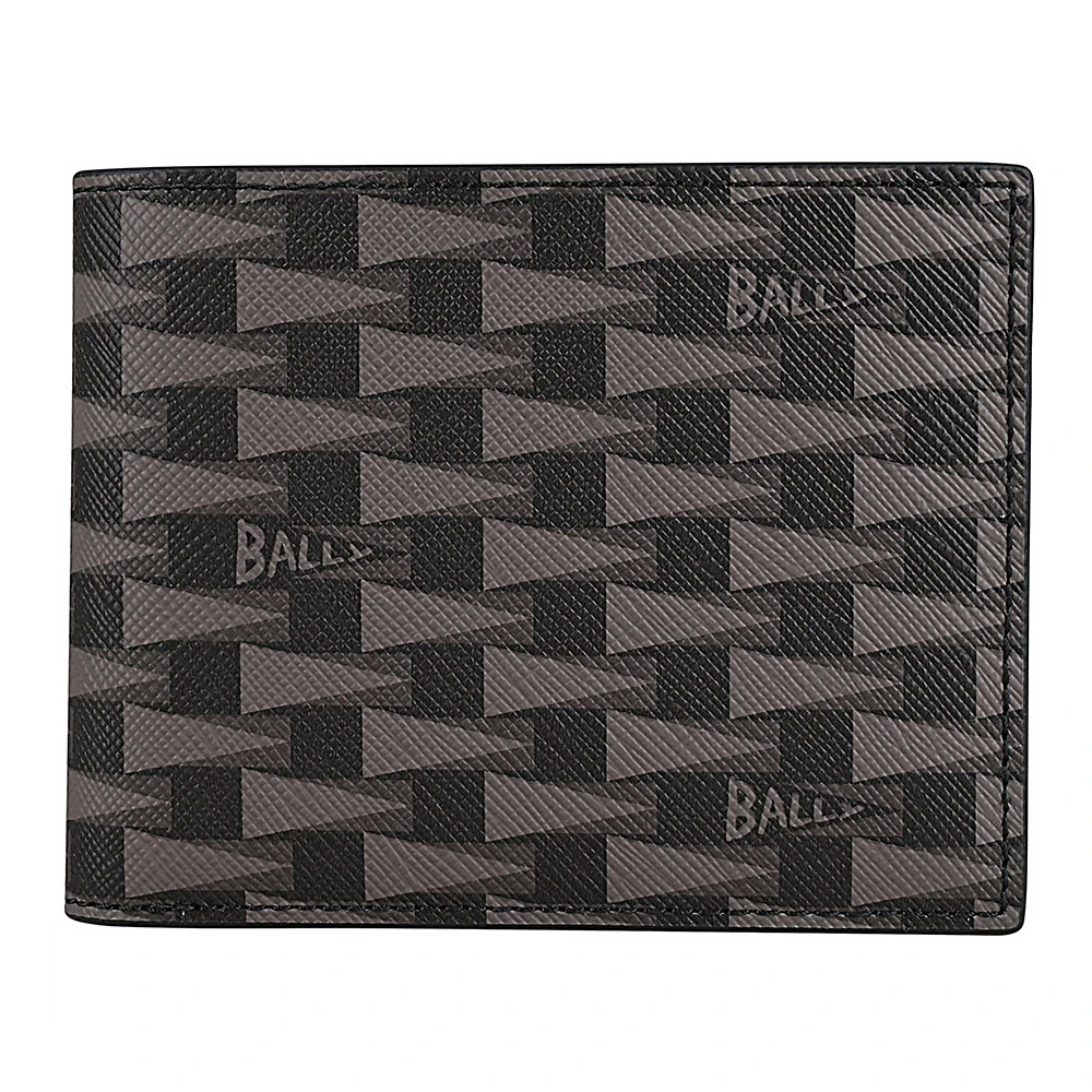 BALLY BALLY Pennant三角旗印花塗層皮革4卡短夾(黑)