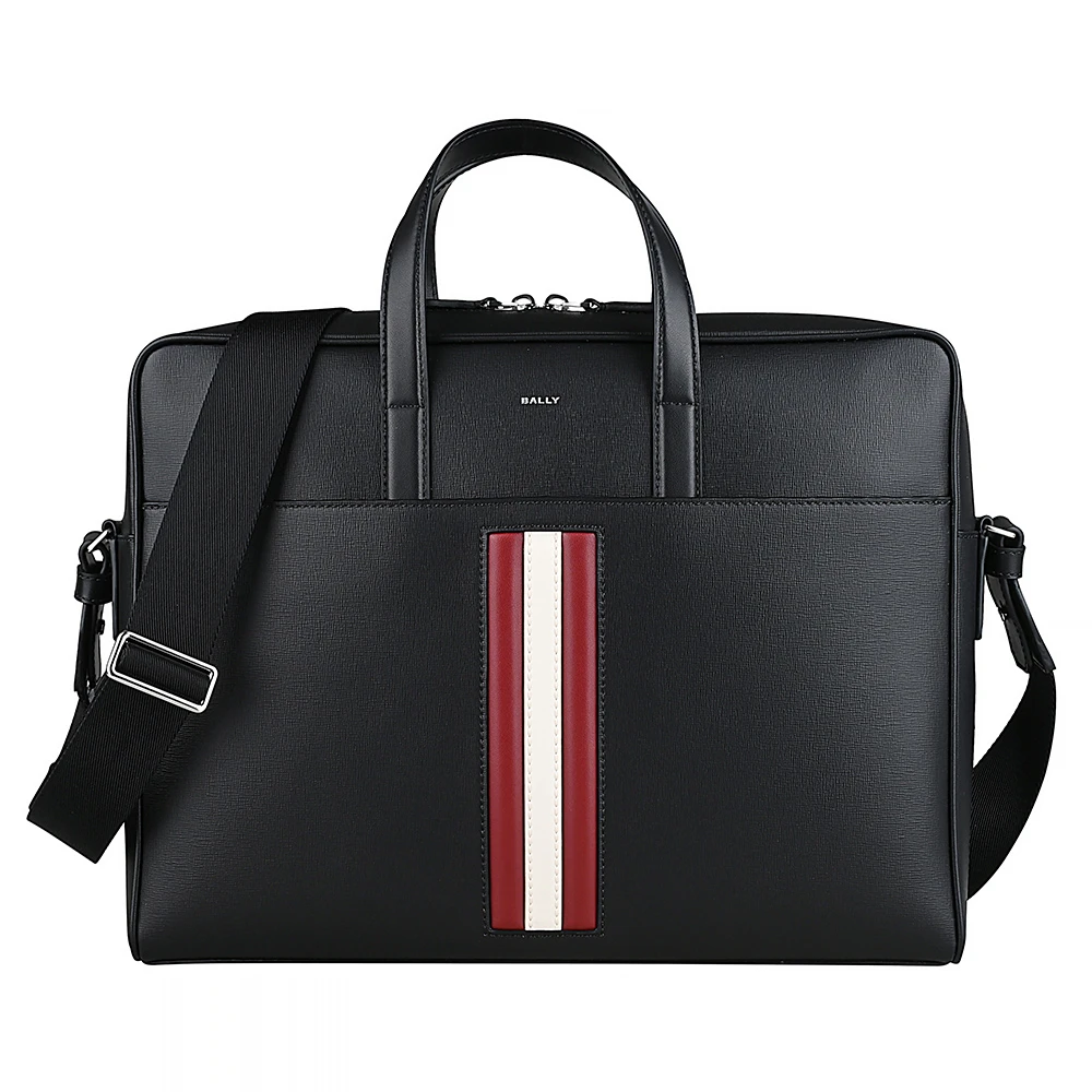 BALLY BALLY Mythos銀字燙印紅白條紋塗層皮革手提斜背公事包(黑)