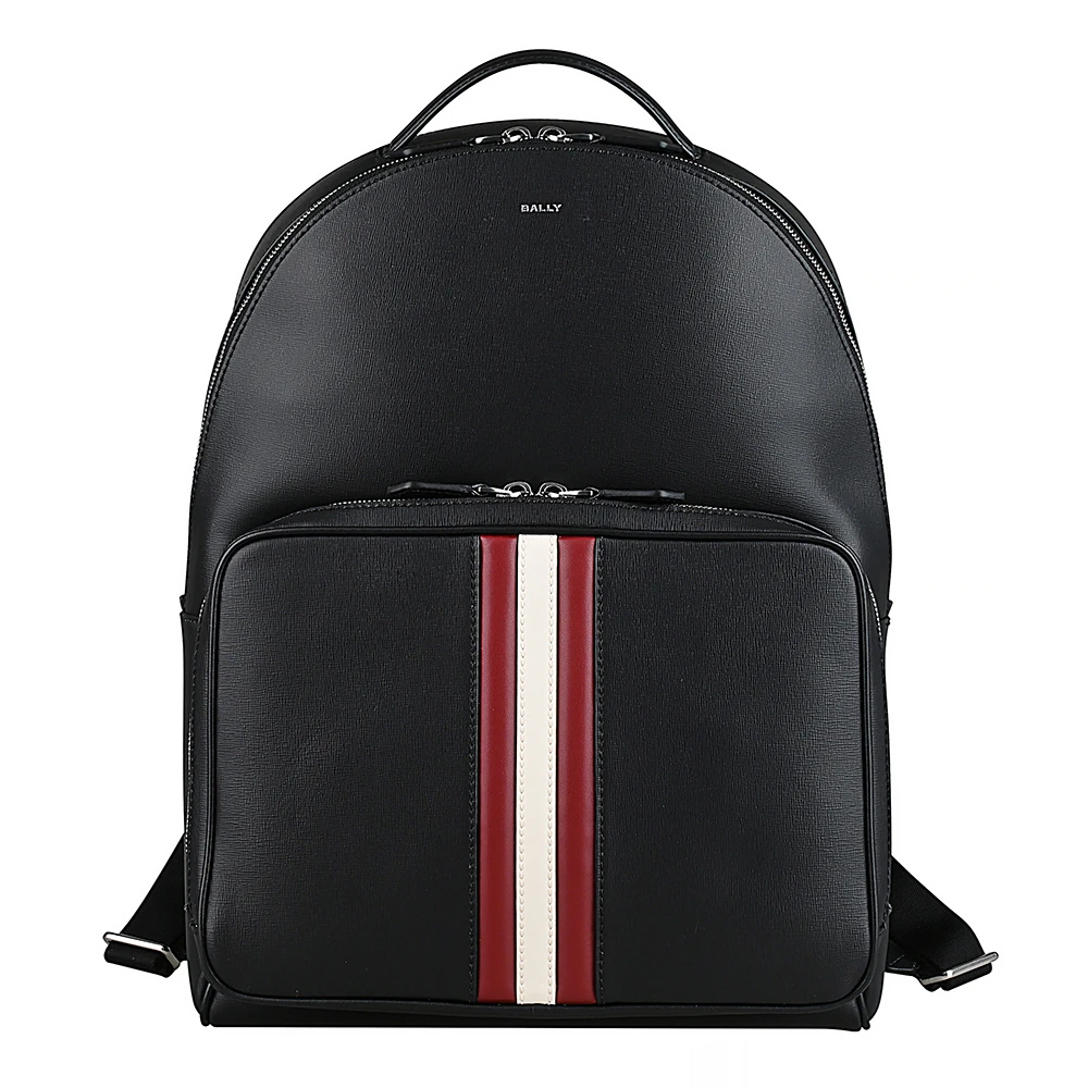 BALLY BALLY Mythos銀字燙印紅白條紋塗層皮革後背包(黑)