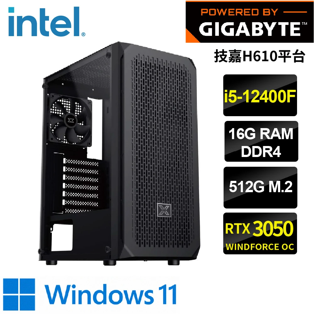 技嘉平台 i5 六核 GeForceRTX3050 WIN11{萊恩W}電競機(i5-12400F/H610/16G/512G)