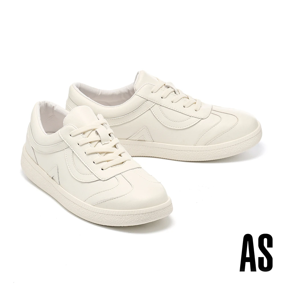 AS 集團 日常舒適純色牛皮綁帶厚底休閒鞋(白)