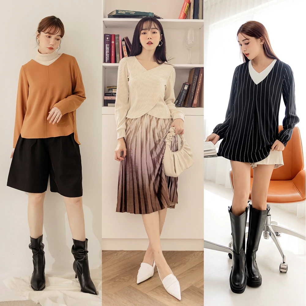 OB 嚴選 小V臉雅緻長袖上衣(坑條紋/千鳥格紋/假兩件/大尺碼/小尺碼)