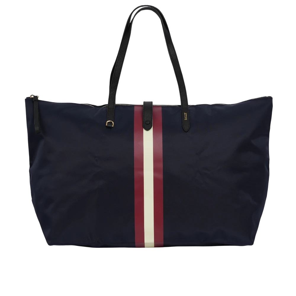預購 BALLY 經典紅白條紋可折疊尼龍大款托特包_附收納袋(墨藍色)