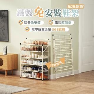 慢慢家居 鐵製免安裝-六層折疊鞋架 面寬69.5公分(免安裝鞋架 簡易鞋架 鞋櫃)