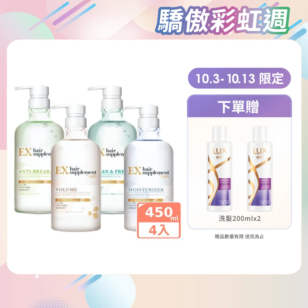 LUX 麗仕 女大推薦 日本製髮的補給 胺基酸洗髮精/護髮乳450gx4入(絲蛋白/膠原蛋白/角蛋白/冰河水)