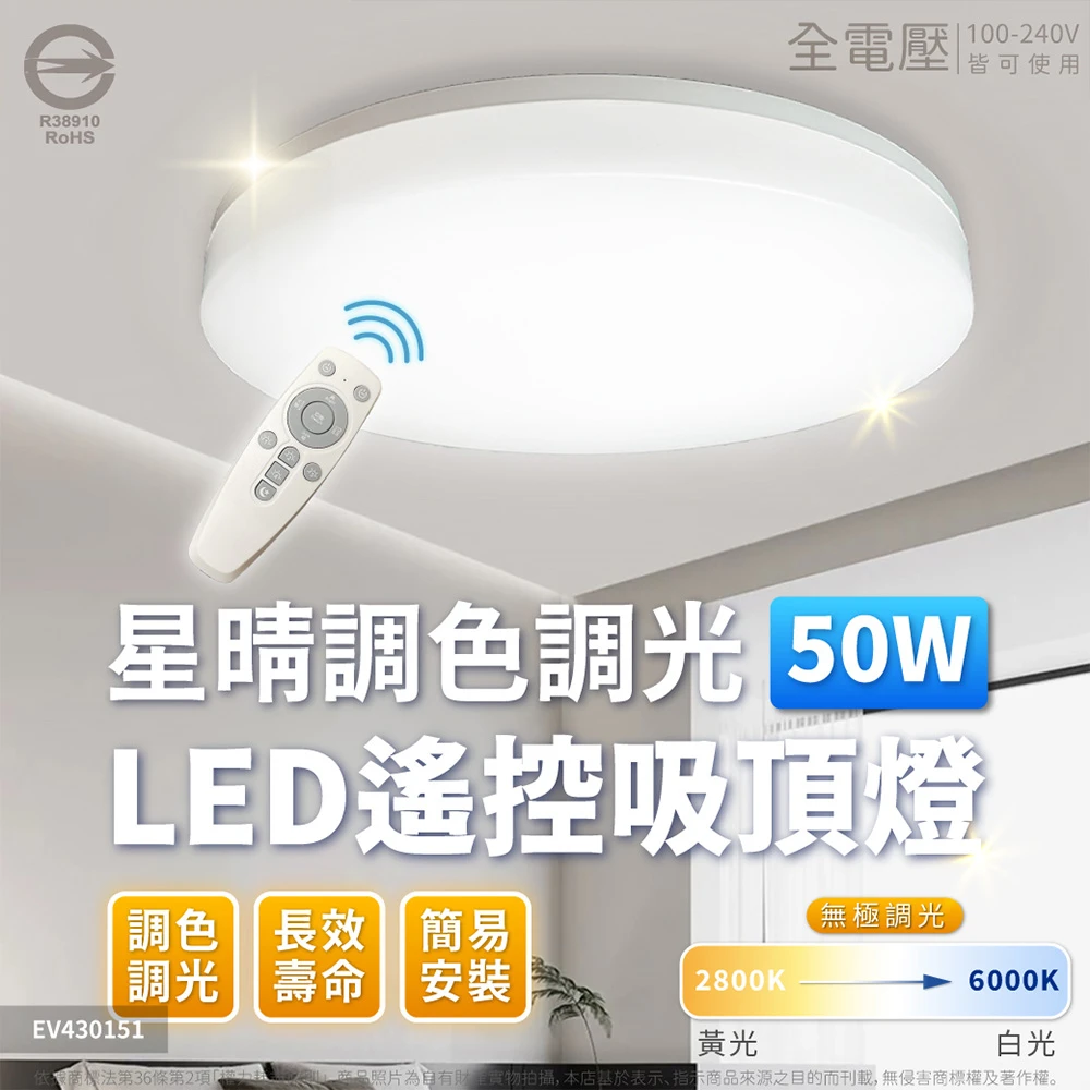 Everlight 億光 2入組 LED 星晴 50W 全電壓 遙控調光調色 LED 吸頂燈 天花板燈(適用5-6坪)