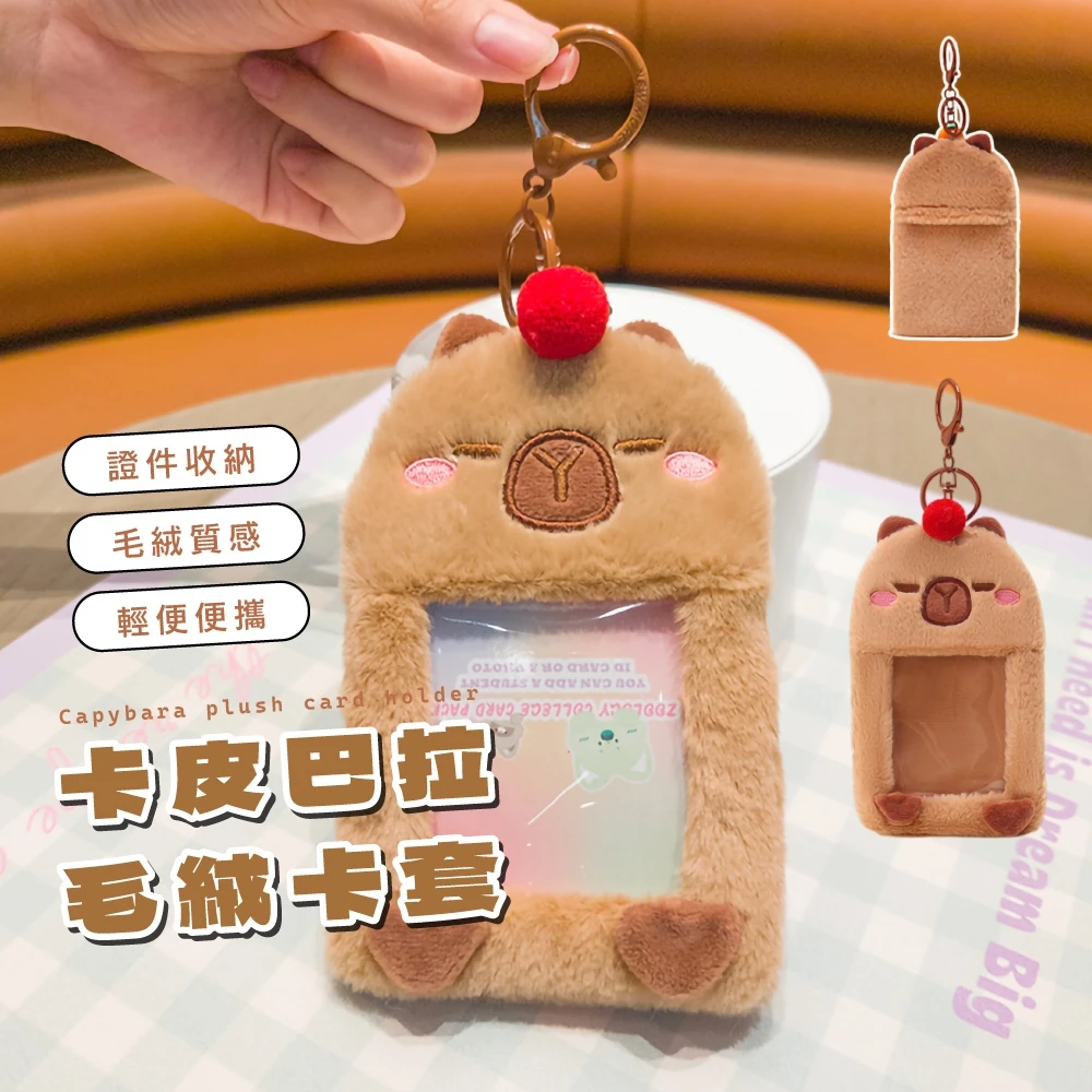 水豚通勤 卡皮巴拉毛絨卡套(愛豆小卡 識別證 證件套 票卡夾 悠遊卡 工作證 信用卡 禮物)