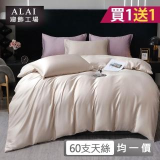 ALAI 寢飾工場 台灣製 買一送一 60支天絲床包枕套組(單人/雙人/加大/素色 花款任選)