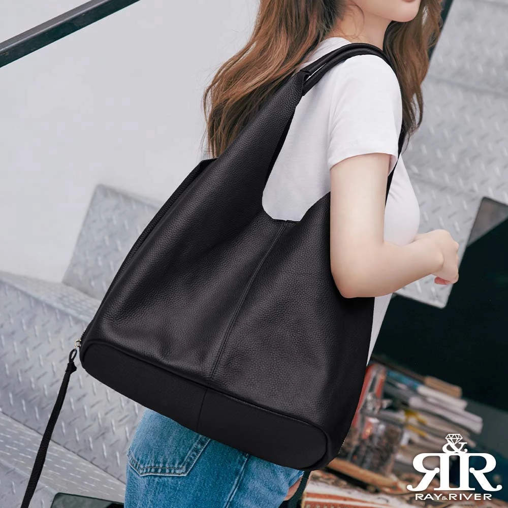 2R 手工真皮 頭層牛皮Vest肩背流蘇垂墜背心包 百搭黑(真皮包包 肩背包 流蘇 大包)