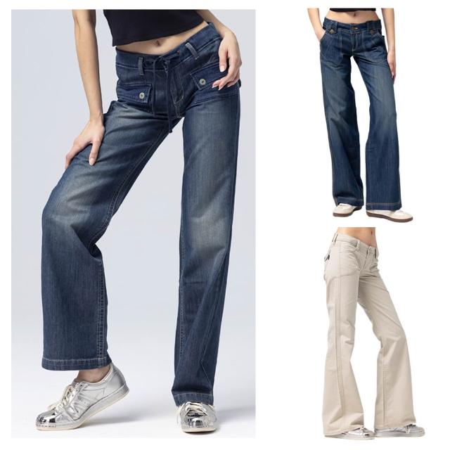 預購 MsMore 闊腿口袋黃金線牛仔褲高腰顯瘦小個子窄版直筒長褲#124194(5款任選)