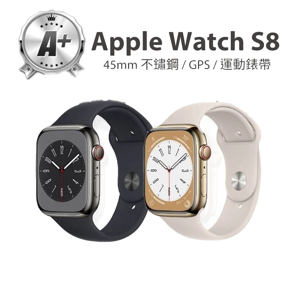 Apple 不鏽鋼A+級福利品 Apple Watch S8 GPS版 45mm(不鏽鋼金屬錶殼搭配運動型錶帶)