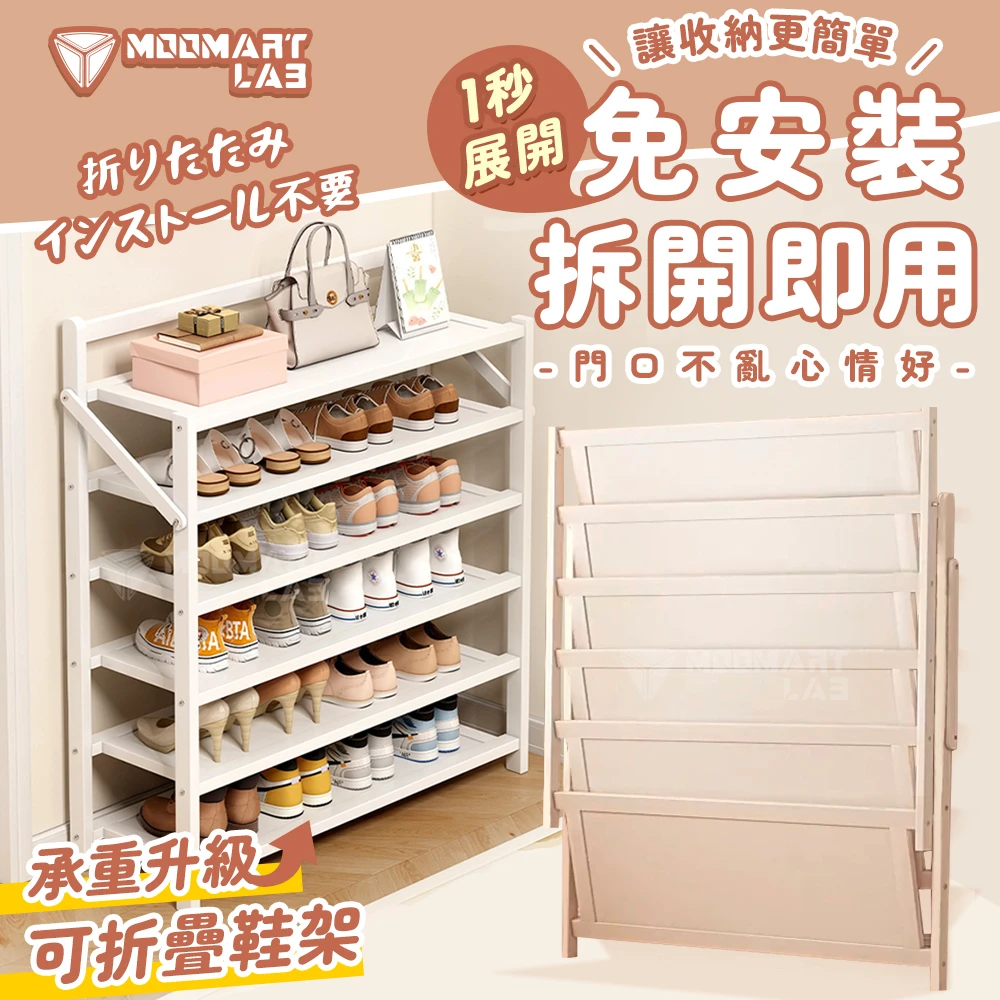 木馬特實驗室 免安裝折疊鞋架-四層60cm(鞋控救星 多層鞋架 便攜鞋架 鞋櫃替代品 多功能鞋架 宿舍鞋架)
