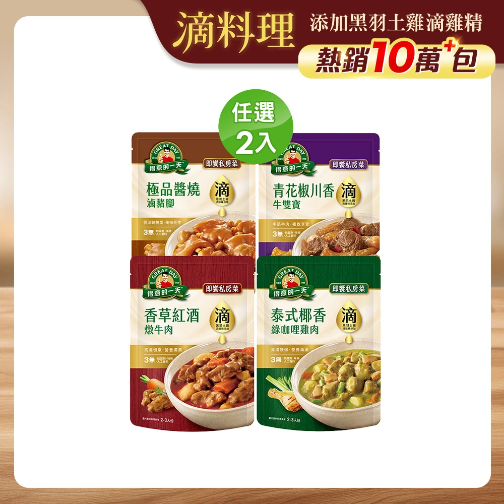 得意的一天 滴料理-即饗私房菜任選X2入(綠咖哩雞肉/紅酒燉牛肉/醬燒滷豬腳/青花椒牛雙寶)